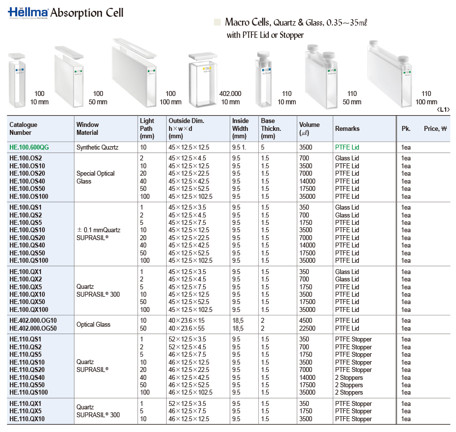 Macro Cells, Quartz & Glass, 0.35~35㎖