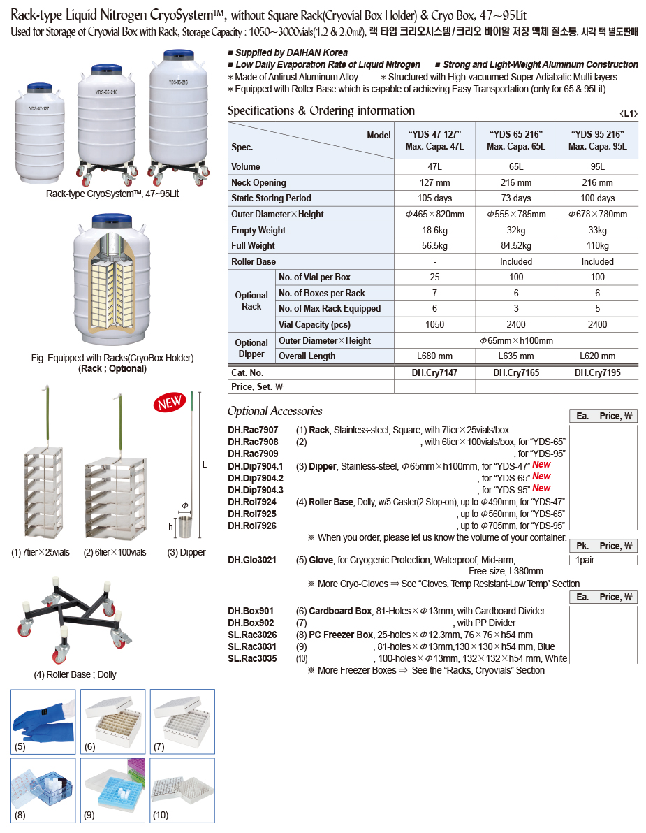 Rack-type Liquid Nitrogen CryoSystemTM, without Square Rack & Cryo box, 47~95LitStorage Capacity : 1050~3000 vials(1.2 & 2.0㎖), 랙 타입 크리오시스템, 사각 랙 별도판매